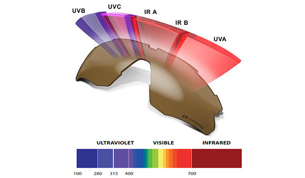 El lente IR detiene totalmente la absorción de las ondas UV-A, UV-B y UV-C, causantes de varias enfermedades (cataratas, degeneración de la retina y fotoqueratoconjuntivitis). También filtra la luz azul (380-550 nm), una de las causas de la fotoretinitis.